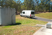 Aeration of water storage tank to reduce chlorine levels prior to use.